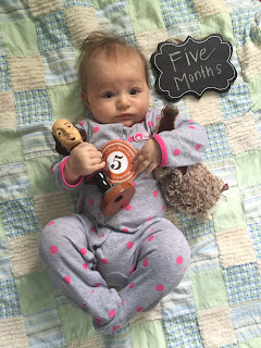 She's a grasping master! Great at grabbing my hair. :) Shestill sleeps through the night most nights, but, with teeth incoming, she has had a few restless nights here and there. Boo. But, overall, she's still just AMAZINGBABE with the sleeping.